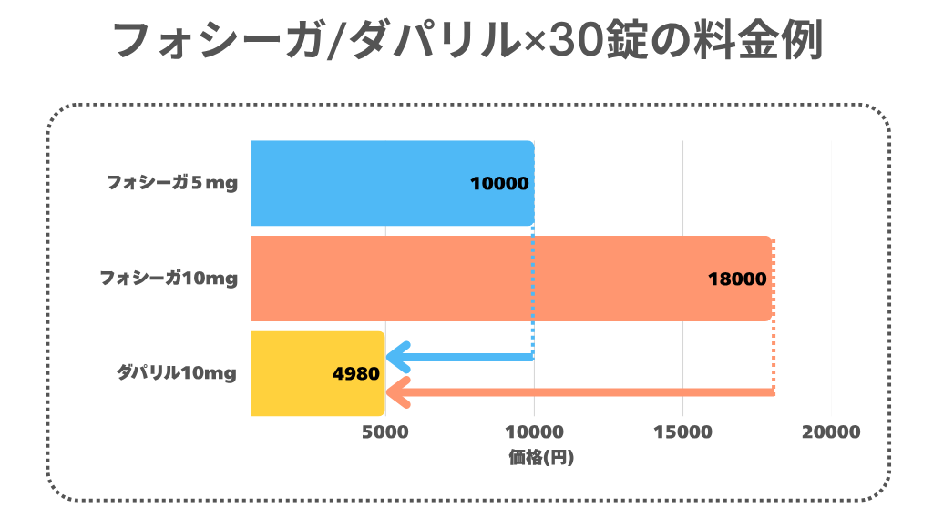 フォシーガとダパリルの価格には大きな差があり、コストを重視するならジェネリック医薬品のダパリルが有利です。