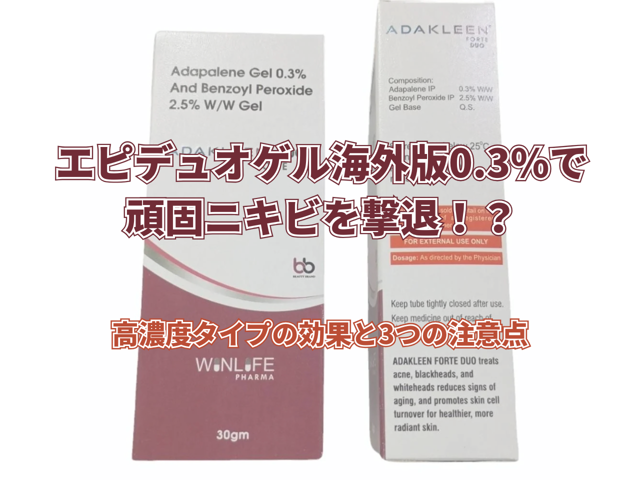 海外で承認されているADAKLEEN DUO FORTEは、国内版の3倍の濃度(0.3%)でアダパレンを配合しており、頑固なニキビに対してより高い改善効果が期待できます。