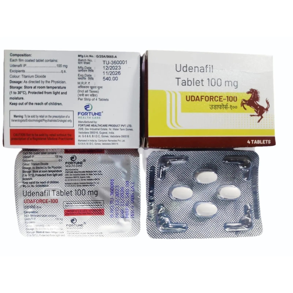 ウダフォース100mg(Udaforce)は、Fortune Healthcare社が製造する、有効成分ウデナフィル100mgを含有するED治療薬です。韓国で開発されたアジア初のED治療薬「ザイデナ」のジェネリック医薬品として、アジア人の体質に合わせて最適化されています。従来のED治療薬(バイアグラ、レビトラ、シアリス)に続く第4世代の革新的な治療薬として、即効性と持続力のバランスに優れた特性を持っています。