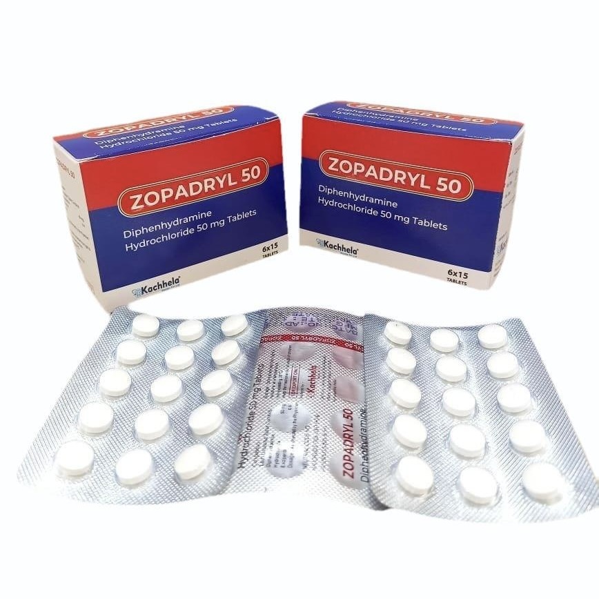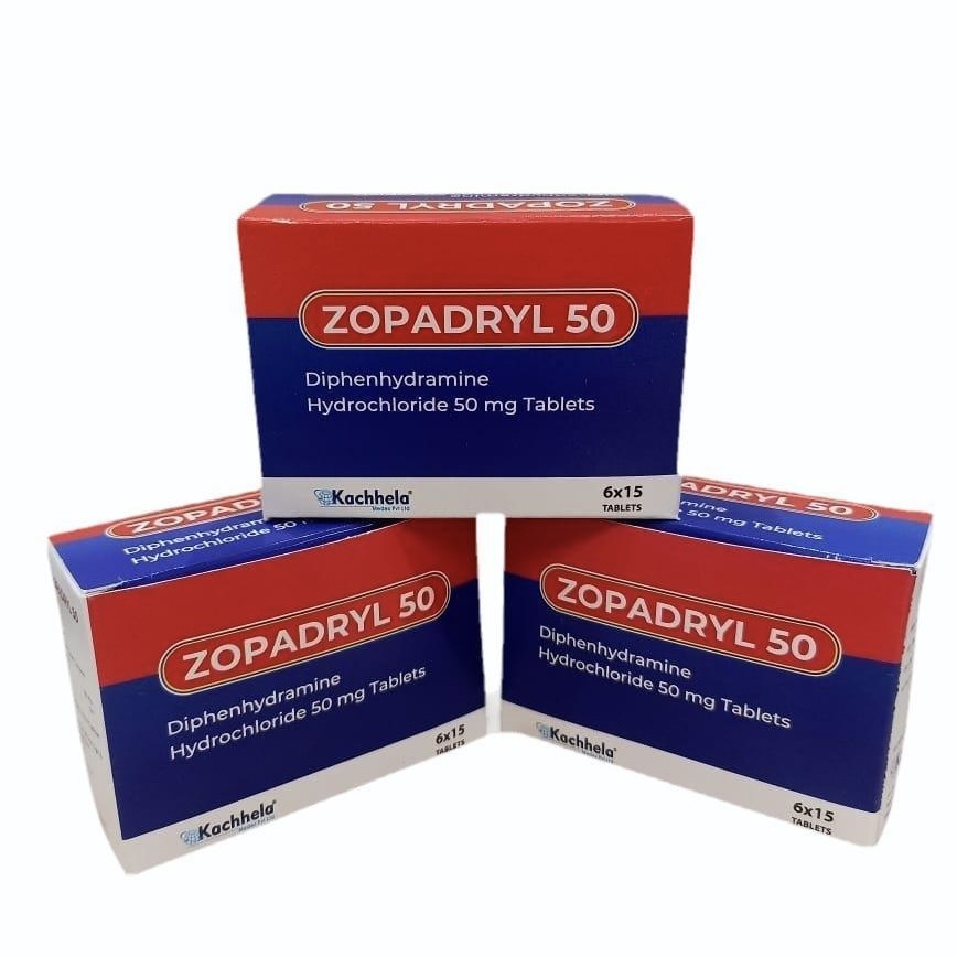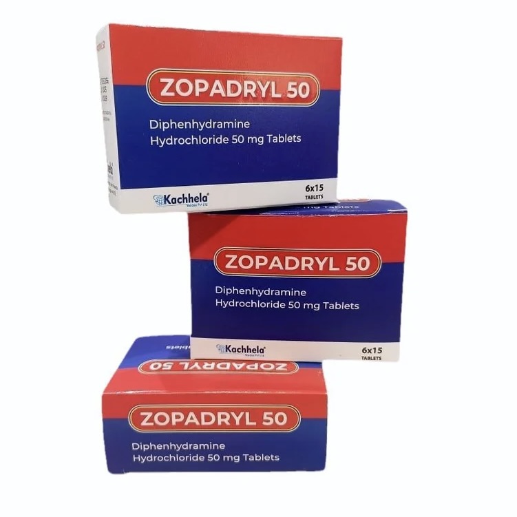 ゾパドリル50mg(Zopadril 50mg)は、インドの製薬会社Kachhela Medex社が製造する睡眠補助薬です。有効成分としてジフェンヒドラミン塩酸塩50mgを含有しており、抗ヒスタミン薬としての中枢神経抑制作用を利用して、入眠困難や中途覚醒などの一時的な不眠症状を緩和します。依存性の高いベンゾジアゼピン系・非ベンゾジアゼピン系薬と異なり、ジフェンヒドラミンは身体的依存のリスクが低く、短期的な使用に適した成分です。